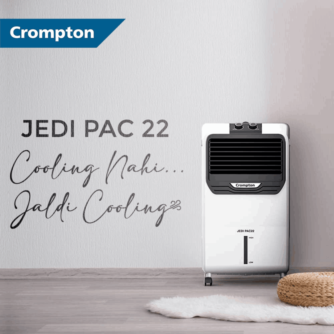 • Product: Crompton Jedi PAC 22 Personal Air Coolerwith water tank capacity (upto brim) of 22 L; Suitable for 140 sq. ft. room size