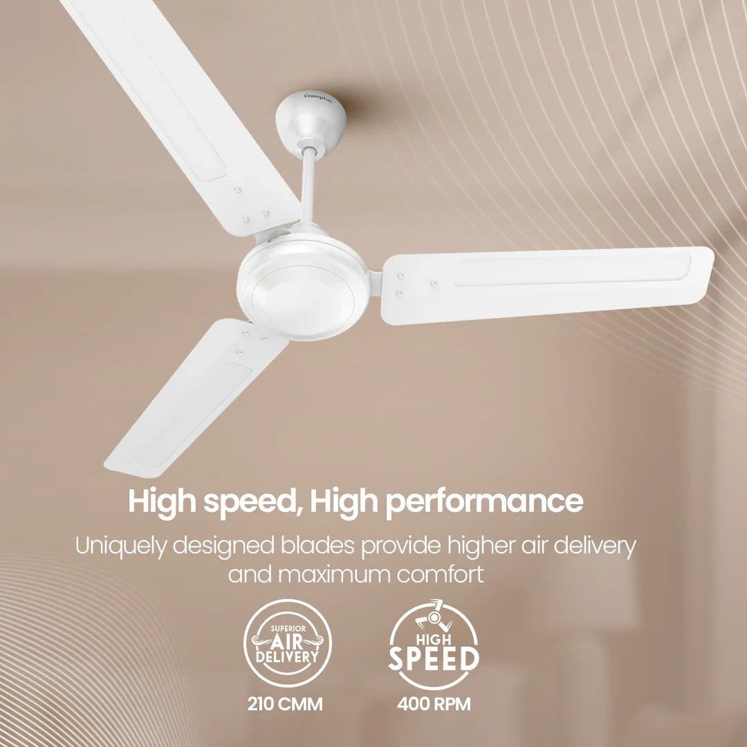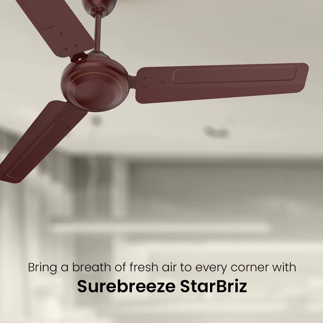 Feel the comfort as you step into a room where the air is perfectly cool and inviting. The Crompton SureBreeze StarBriz fan has expertly crafted blades that deliver a refreshing breeze at high speed. This transforms any space into a comfortable one. With its durable double ball bearing and 100% copper motor, you can count on it to provide reliable performance for years to come. The rustproof blades not only look great but also ensure long-lasting use without compromising on style. Whether you're relaxing after a long day or having a fun time with friends, this fan enhances your experience by creating an atmosphere of comfort and relaxation that everyone will appreciate.