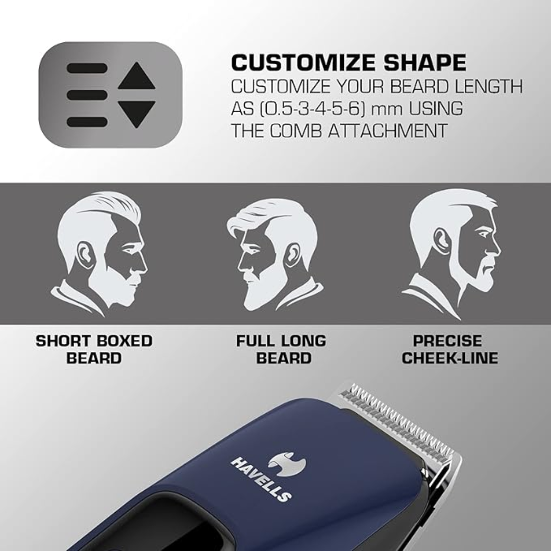 Havells Bt5112C Li-Ion Men Cord & Cordless Beard Trimmer (Blue), Battery Powered