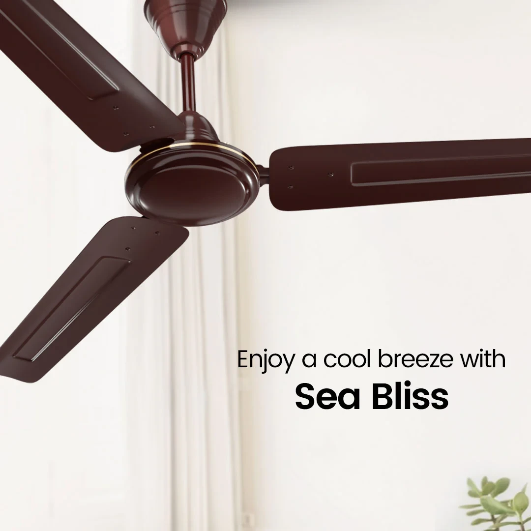 Experience the epitome of comfort with Crompton's Seabliss. Designed to perfection, these fans are equipped with double ball bearings for enhanced durability, ensuring a prolonged life span. The anti-rust feature guarantees a lasting shine, while the superior air delivery and high-speed settings provide maximum cooling efficacy. Backed by a reassuring 2-year warranty, Crompton Regular designer fans are a seamless blend of style and functionality.