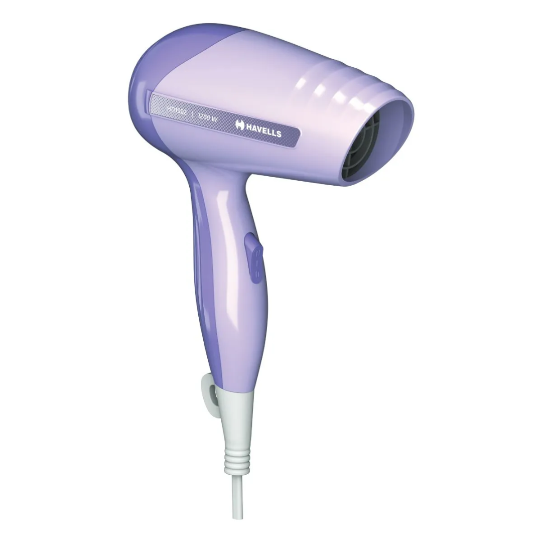 The Havells 1200 W compact and lightweight hair dryer with ensures absolute safe and uniform airflow. This hair dryer is equipped with 2 heat and speed settings for styling versatility to achieve the look you love with maximum precision. With Hanging loop with Tangle free swivel cord for hassle free use.